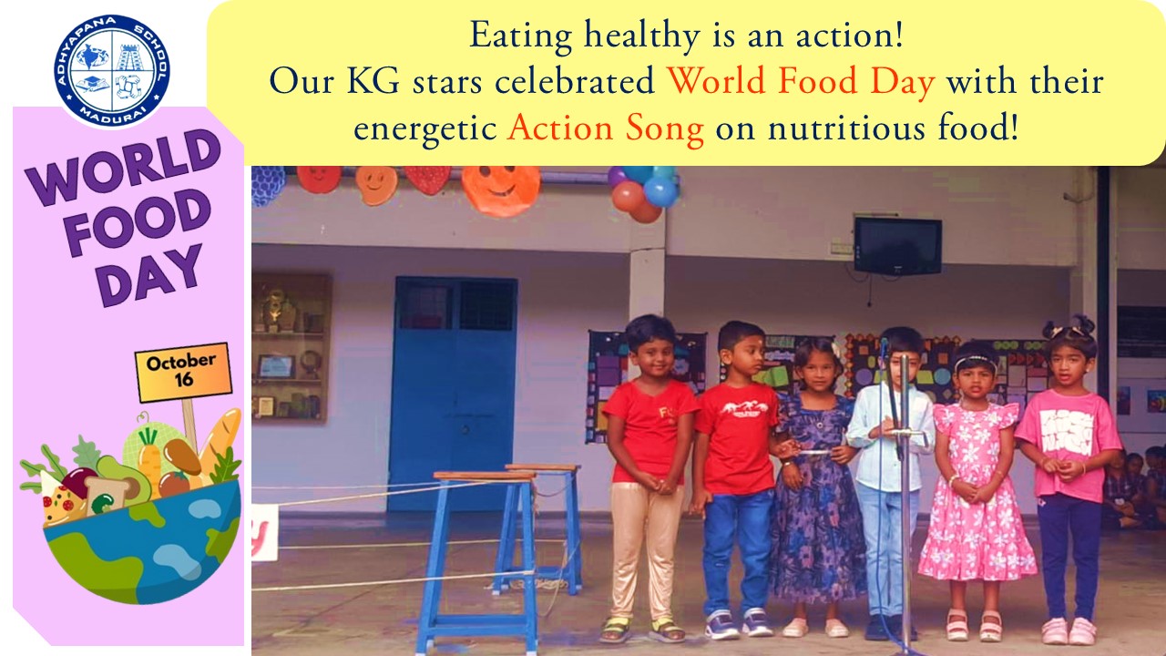 Our amazing Kindergarten students at Adhyapana School CBSE celebrated World Food Day on 16th October 2025.
